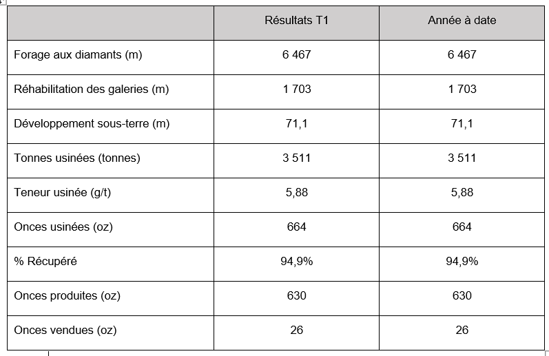 Pascal Hamelin, président et chef de la direction, déclare: « Je suis très fier de ce que nous avons accompli au cours des trois premiers mois de la phase de développement de notre projet. L’équipe d’exploitation était prête à démarrer immédiatement lorsque le financement avec Nebari a été finalisé début juillet. De nombreux petits projets, trop nombreux pour être énumérés, ont tous été lancés au cours du dernier trimestre afin de permettre le début du développement des galeries souterraines, le début du traitement de l’or à l’usine et, enfin, la coulée d’une première barre d’or avant la fin du trimestre. L’atteinte de ces objectifs exige l’engagement total de tous les employés. L’objectif au cours des prochains trimestres est de poursuivre la montée en production vers le statut de production commerciale complète.»