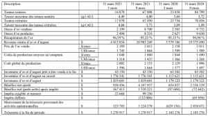 Rouyn-Noranda, Québec, Canada, le 3 juin 2021 Mines Abcourt inc. (la « Société » ou « Abcourt ») (Bourse de croissance TSX : ABI) rapporte d’excellents résultats au troisième trimestre et pour la période de neuf mois terminée le 31 mars 2021. Tous les montants sont en dollars canadiens à moins d’être indiqués différemment.