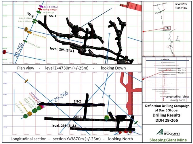 Drill hole 29-266 targeting the western extension of the stope intersected several gold mineralized zones in an interval of 54.9 to 91.5 m. According to the first results received, the main mineralized zones are: