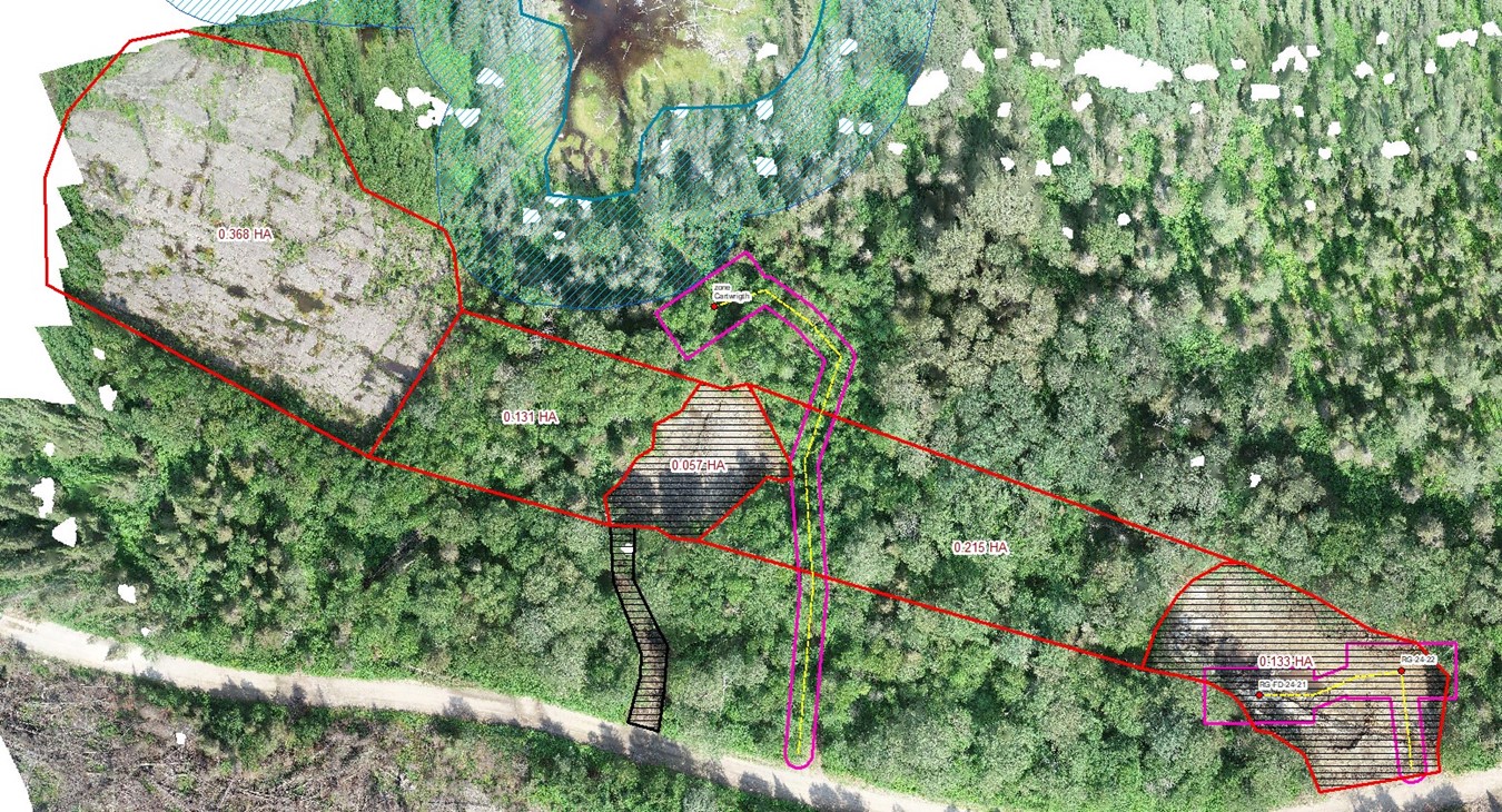 Figure 3: Orthomosaic of the three strippings carried out in 2024. The western stripping was done in the 1980s by Cambior.