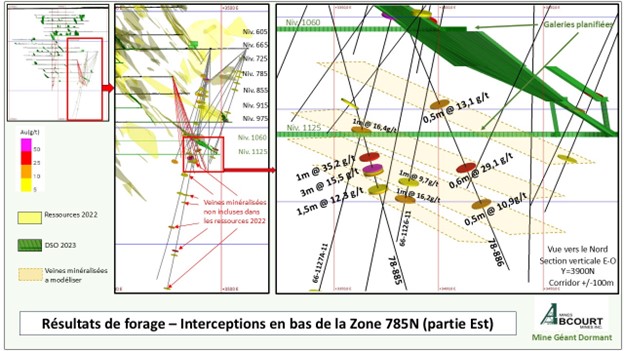 In January 2025, Abcourt completed 2 underground drill holes totaling 928 metres from level 785. The highlights of the analysis results, included in this press release, are as follows: